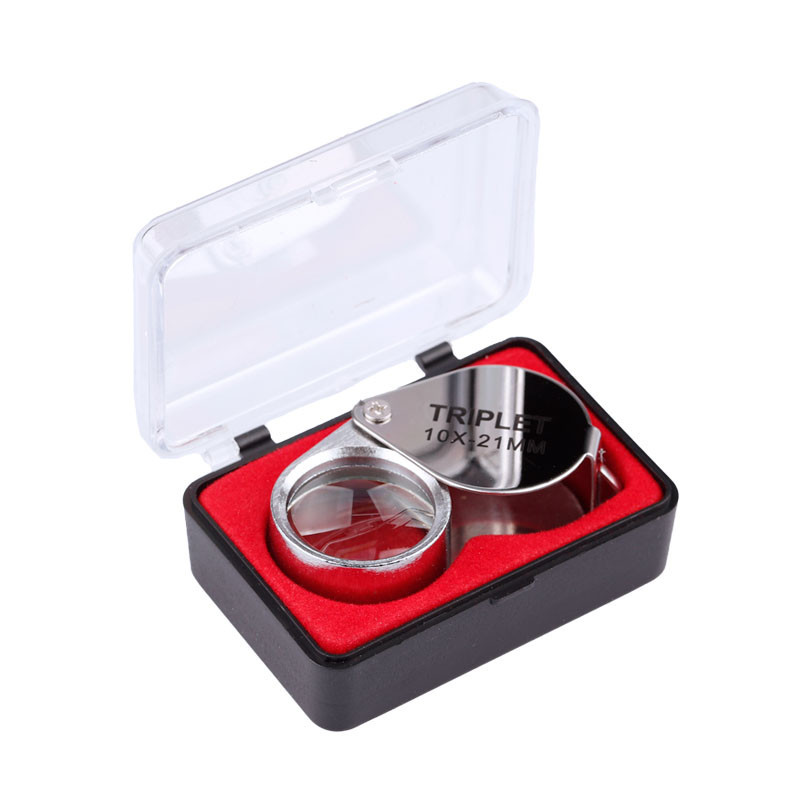 Botaniklup i metal med en forstørrelse på 10x. Botanikluppen er velegnet til at se rav, smykker, sten, blomster, printplader m.m.