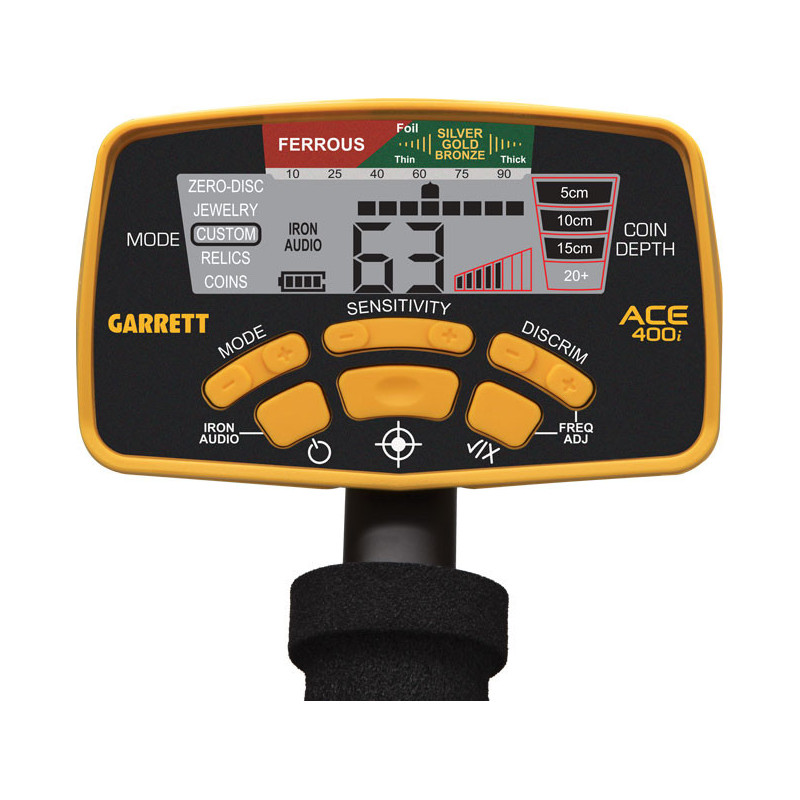 Den nye 400i er en detektor for dem som vil starte med hobbyen eller dem som startede med en mindre model og skal til næste skridt. Som noget helt nyt i ACE modellerne kan den vise target fra 0 til 99 så du hurtigt lærer hvad der gemmer sig i jorden. Udover det er den udstyret med en højere frekvens på 10 kHz så du har større mulighed for bla. at finde guld.
