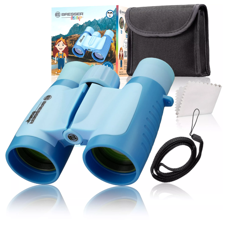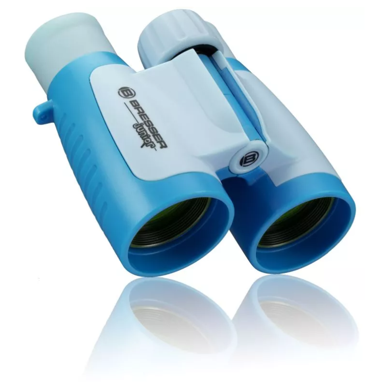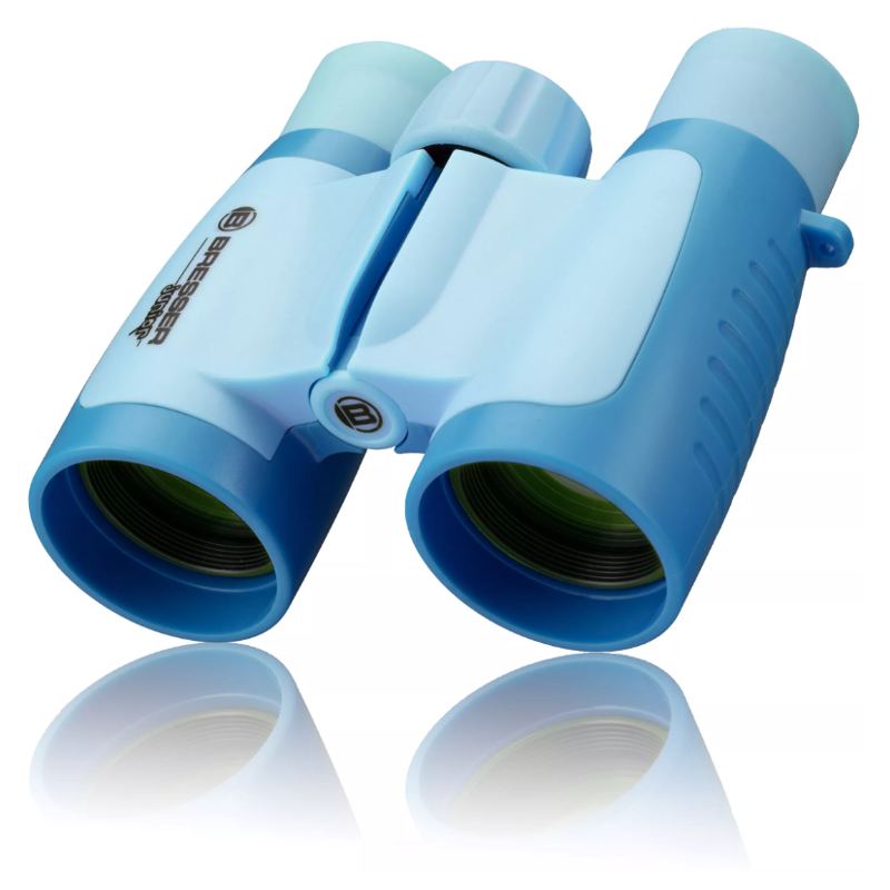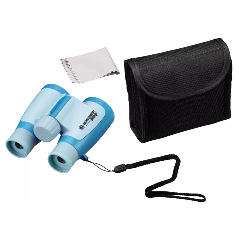 Børnekikkert af mærket BRESSER. Kikkerten har forstørrelse på 3x zoom hvilket gør den perfekt til at kigge efter fugle, natur, sport eller som rejsekikkert.