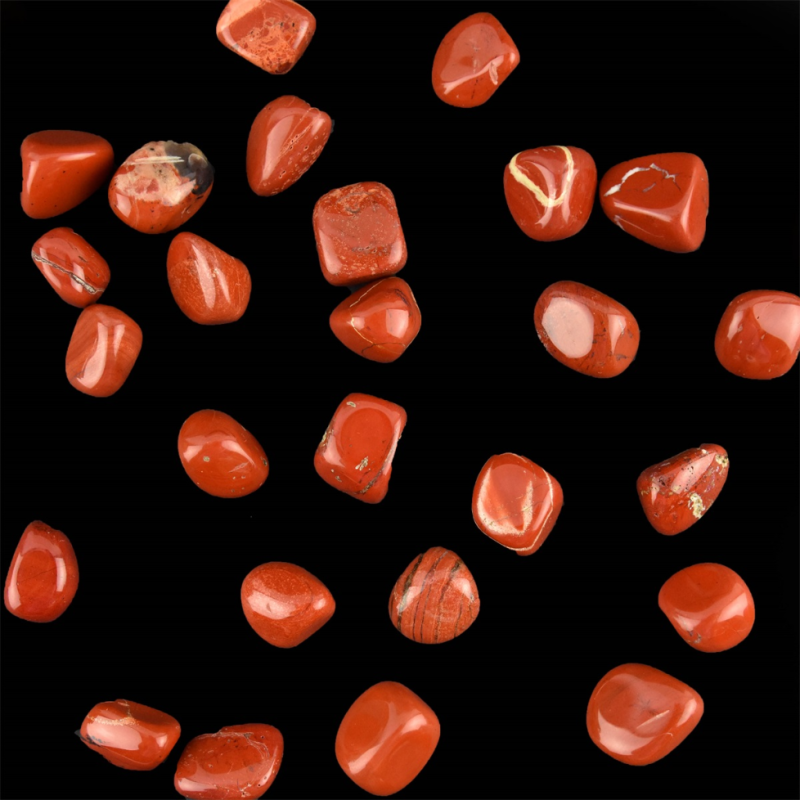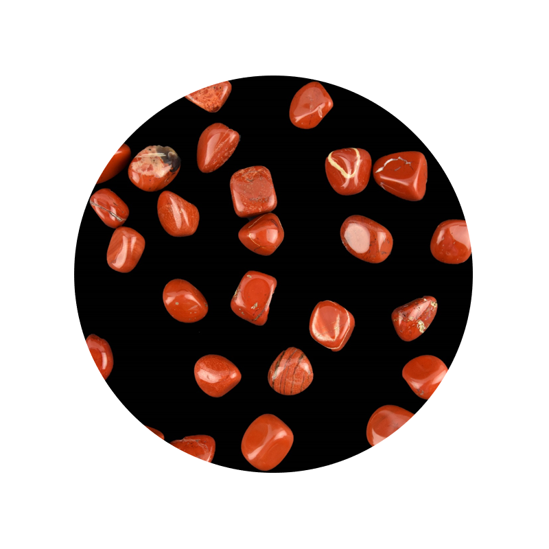 Rød Jaspis er en af de mest fysisk healende sten, den giver ro, tryghed og stabilitet og fremmer mod og robusthed. Rød Jaspis giver jordforbindelse og siges at være en stor hjælp ved fysiske smerter. Har du ondt i ryggen, hjælper det ofte med en Rød Jaspis i hver bukselomme. Rød Jaspis har en energi som er meget dynamisk og energigivende for både krop og sind. Det er en sten, der stort set kun arbejder på det fysiske plan.