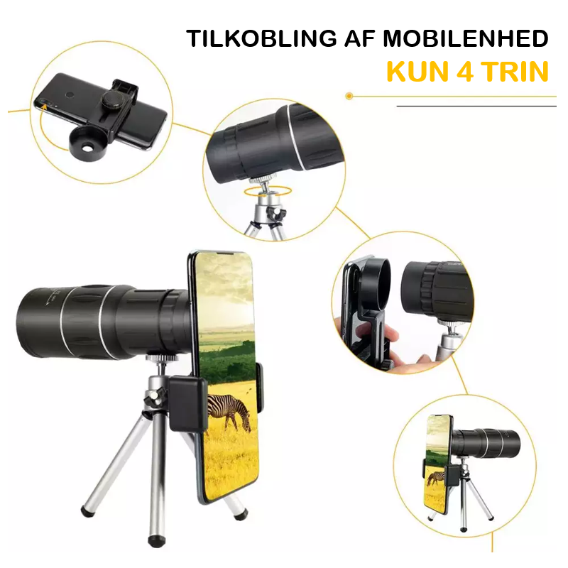 Monokular med tripod og mobil adapter.