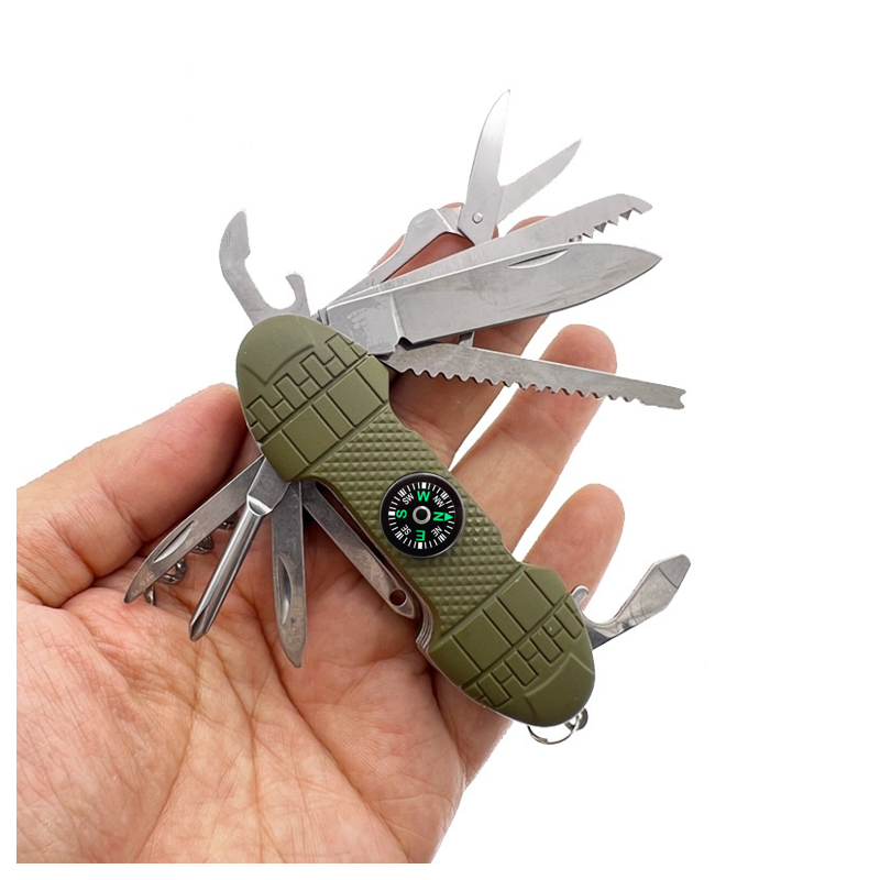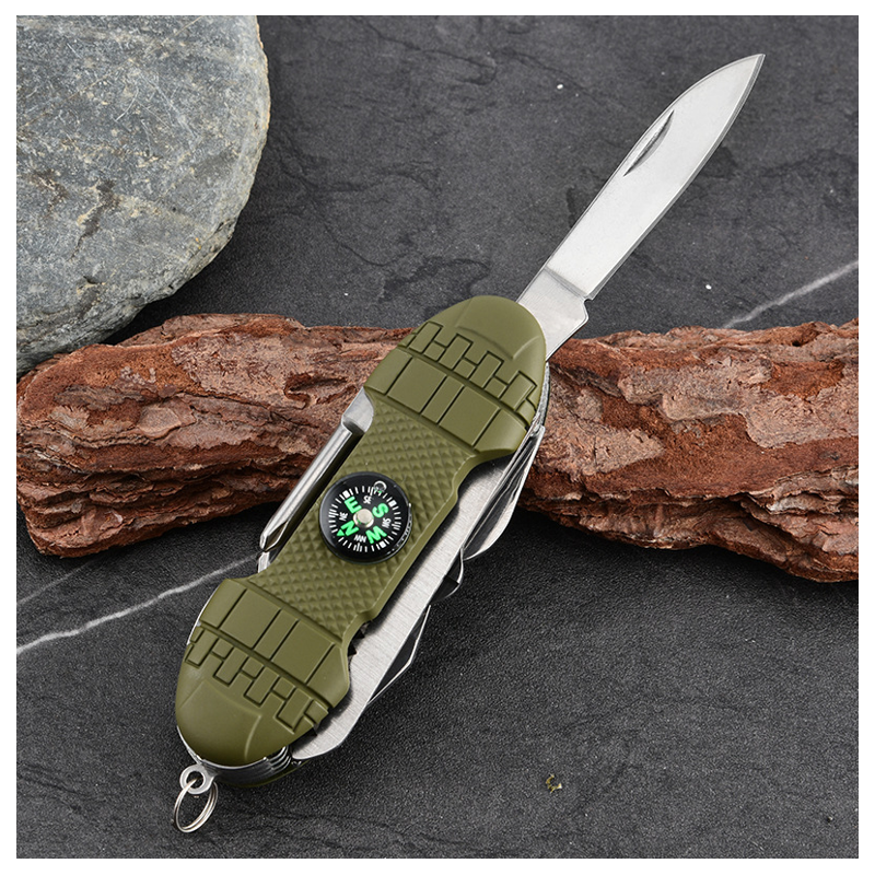 Oplev følelsen af at have plads til en hel værktøjskasse lige i lommen med denne multifunktionelle 11-i-1 kniv, perfekt til outdoor, camping, vandreture, fisketure, overlevelse og hverdagens små opgaver!
