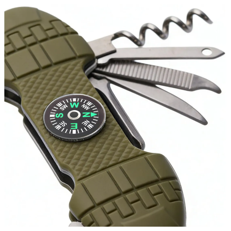 Denne multifunktionelle lommekniv fra Globuz er designet til eventyrere og praktiske brugere, som ønsker et alsidigt og kompakt redskab med flere essentielle funktioner samlet i ét.
