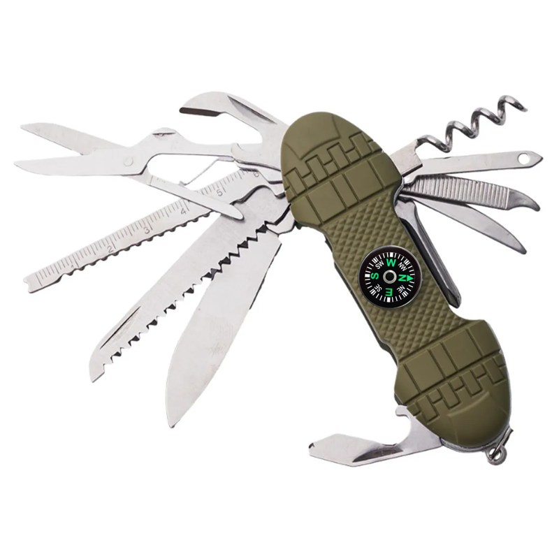 Det kompakte design gør den ideel til at tage den med på farten, når du skal på outdoor eventyr, uanset om du skal på fisketur, sheltertur, camping osv. Lavet af holdbart 420 rustfrit stål, sikrer multiværktøjet lang levetid, korrosionsbestandighed og pålidelig ydeevne, når du har brug for det.