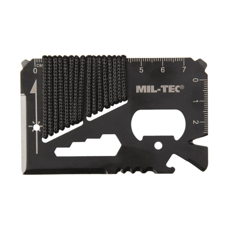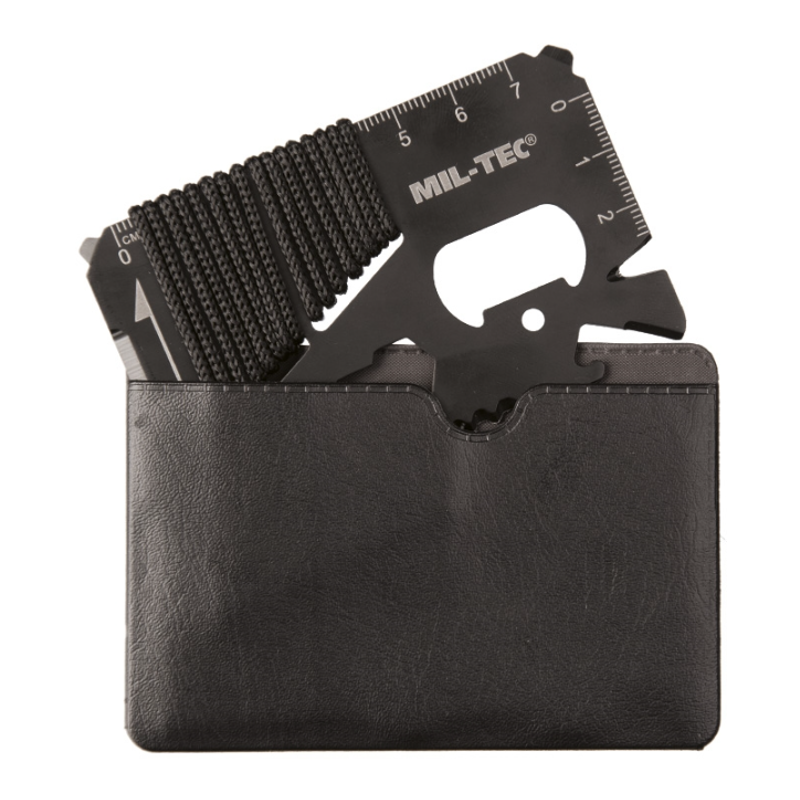 Dette survival værktøjskort i kreditkort-størrelse er et kompakt og alsidigt 12-i-1 multiværktøj, udviklet til outdoor, bushcraft, camping, jagt, prepping og EDC (Everyday Carry).