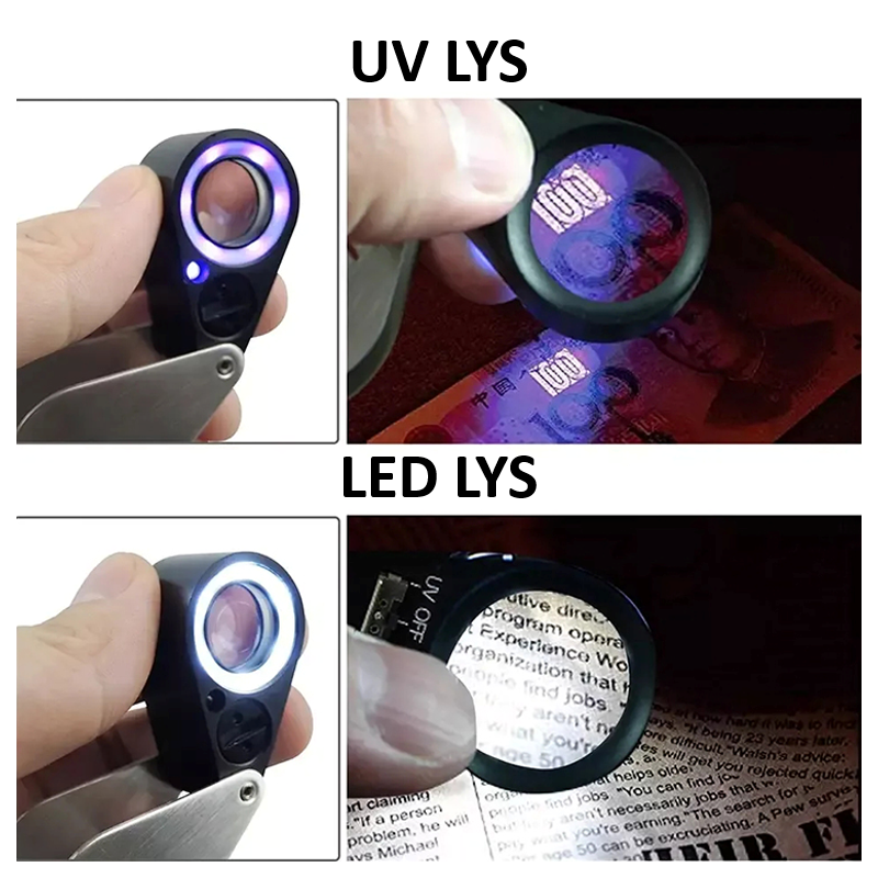 Lup med 20x forstørrelse, LED- & UV-lys