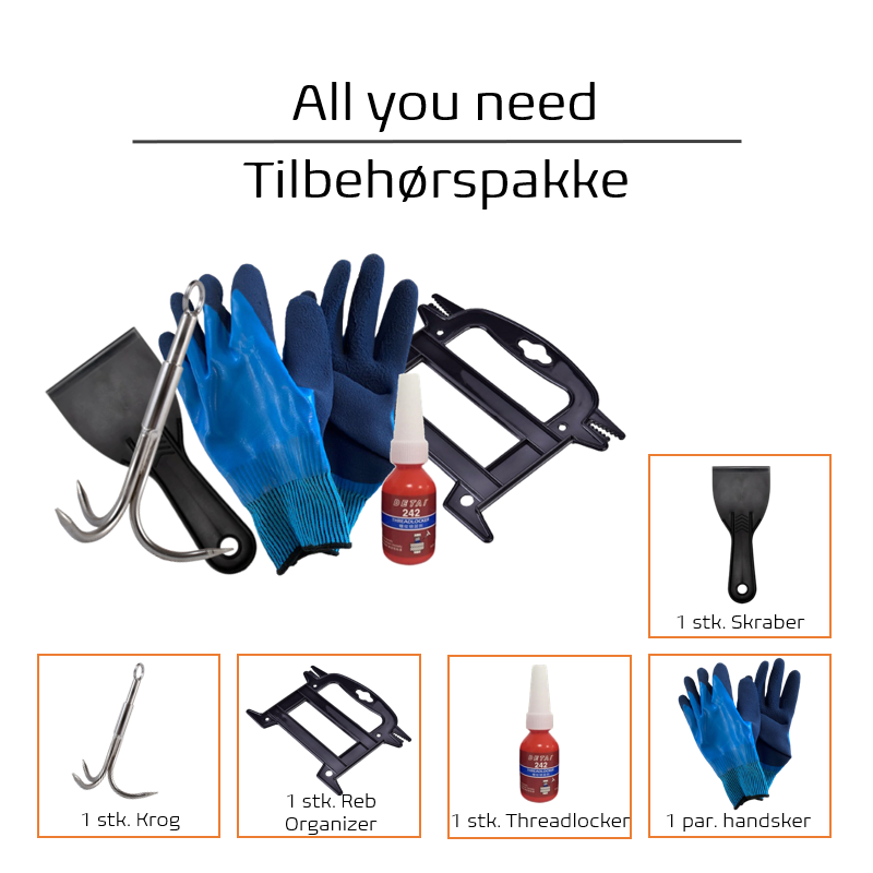 Aldrig gå ned på udstyr! med "all you need" tilbehørspakken, har du alt det nødvendige tilbehør, for at blive en succes med magnetfiskeri.