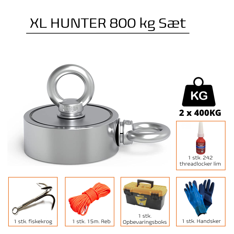 XL Hunter er til den ekstreme magnetfisker. Men en magnet på 800KG trækkraft og en trækkrog kan du fange selv de største ting. Sættet kommer med en masse tilbehør og giver mulighed for masser af timers sjov og aktivitet.