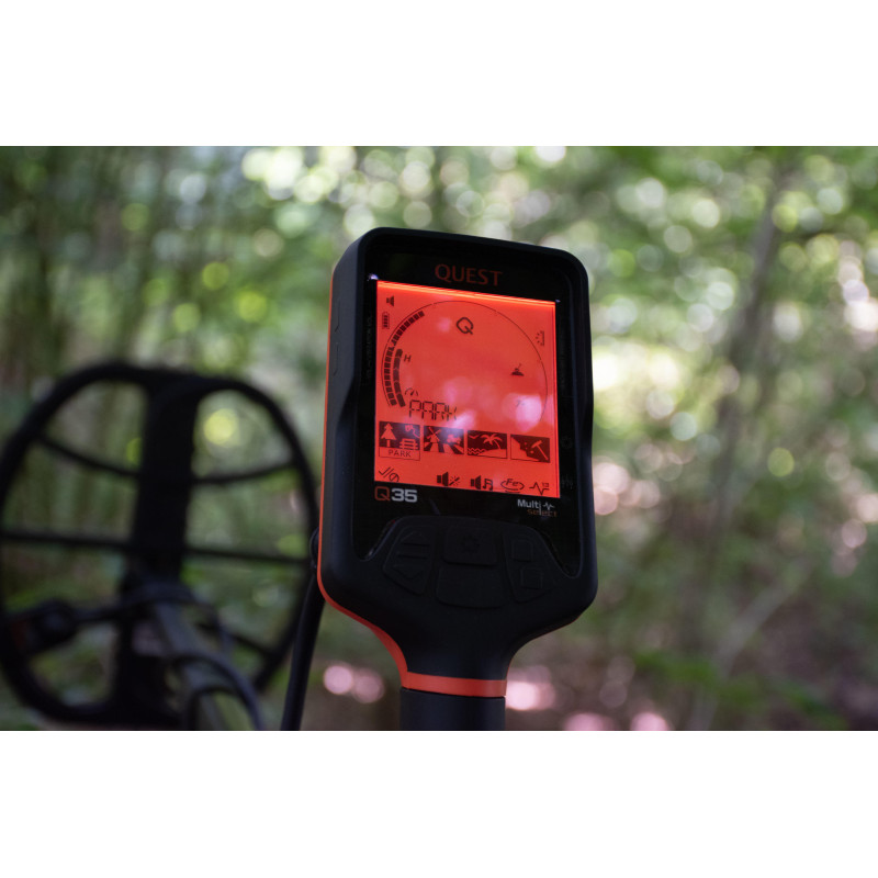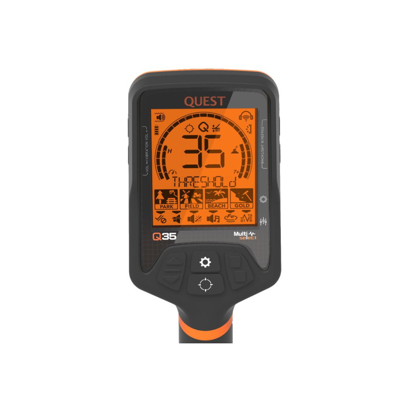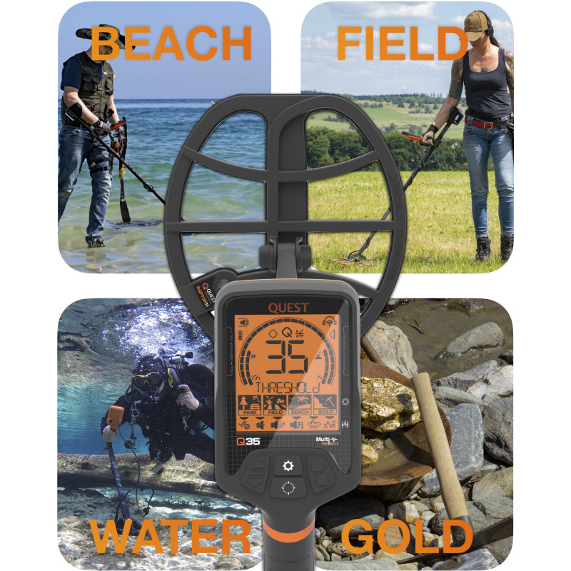 Metaldetektoren Quest Q35 er en meget brugervenlig og nem metaldetektor. Den er derfor velegnet til alle brugere, fra unge til seniorer, om man er erfaren eller uerfaren. Til trods for en pris i begynder segmentet har Q35 alle vigtige funktioner, som en highend metaldetektor skal have, såsom Pinpointer funktion, diskrimination (frafiltrering af metaller), justerbar jern volumen, digital objekt identifikation, baggrundsbelysning, og en ekstrem hurtig registreringshastighed, så detektoren nemt kan adskille et søm fra mønter i jorden. Derudover kan lydniveauet justeres og der er sågar vibrationsfunktion i håndtaget som detektions signal, Hvilket er ideelt til undervandssøgninger, eller i omgivelser med meget støj (hvis hovedtelefoner ikke benyttes) eller hvis man har nedsat hørelse.