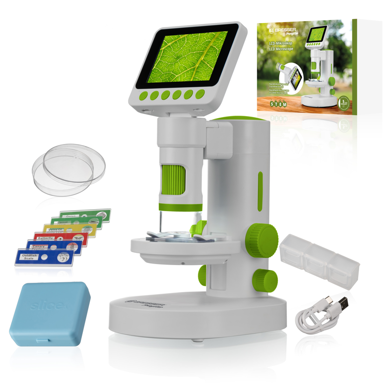 Oplev den fascinerende mikroskopiske verden med BRESSER Youngster LCD mikroskopet. Dette digitale mikroskop er designet til nysgerrige børn fra 6 år og gør det nemt og sjovt at undersøge naturens små detaljer. Med en stor 3,5" LCD-skærm, foto- og videooptagelse samt flere anvendelsesmuligheder er det et ideelt mikroskop til både læring og leg.