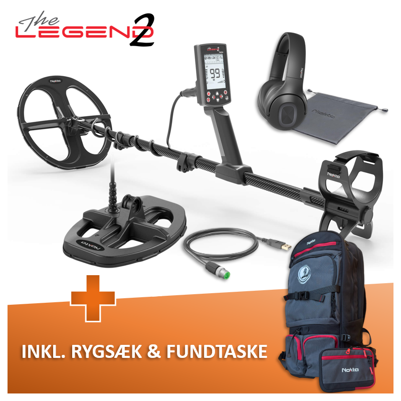 Til de første der køber en legend 2 følger der GRATIS rygsæk og fundtaske med. Ryksækken kan indeholde alt du har brug for - din detektor, pinpointer, dit graveudstyr og meget mere, madpakke, drikkevarer osv. Fundtasken er en klassisk bælte fundtaske.