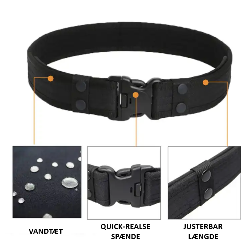 Klassisk taktisk bælte - Vandtæt og i slidstærk kvalitet, udstyret med Quick-realese spænde og er justerbart i længden.