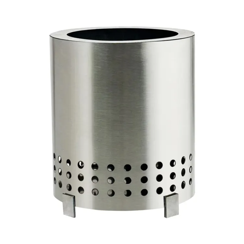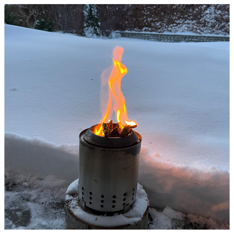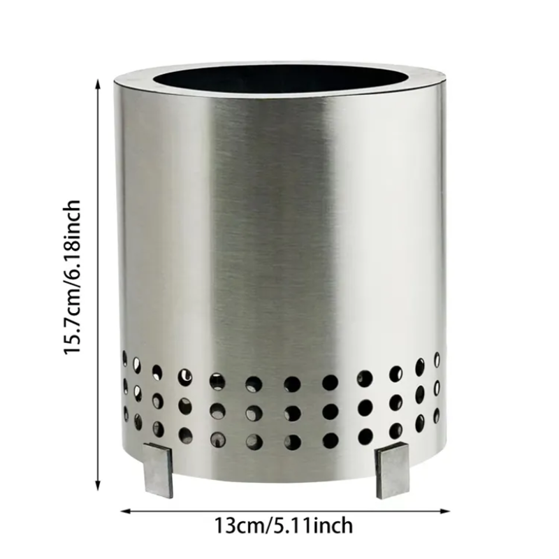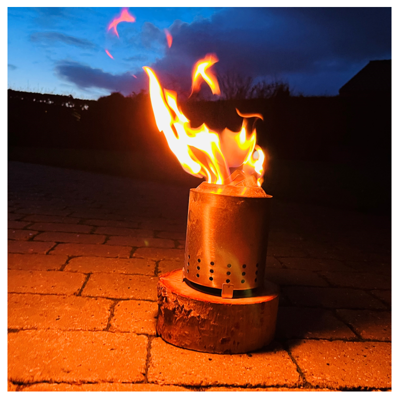 Den fodres med små stykker brænde af 5-10cm (medfølger ikke) og giver en god flamme, grundet luftindtrækket i bunden.