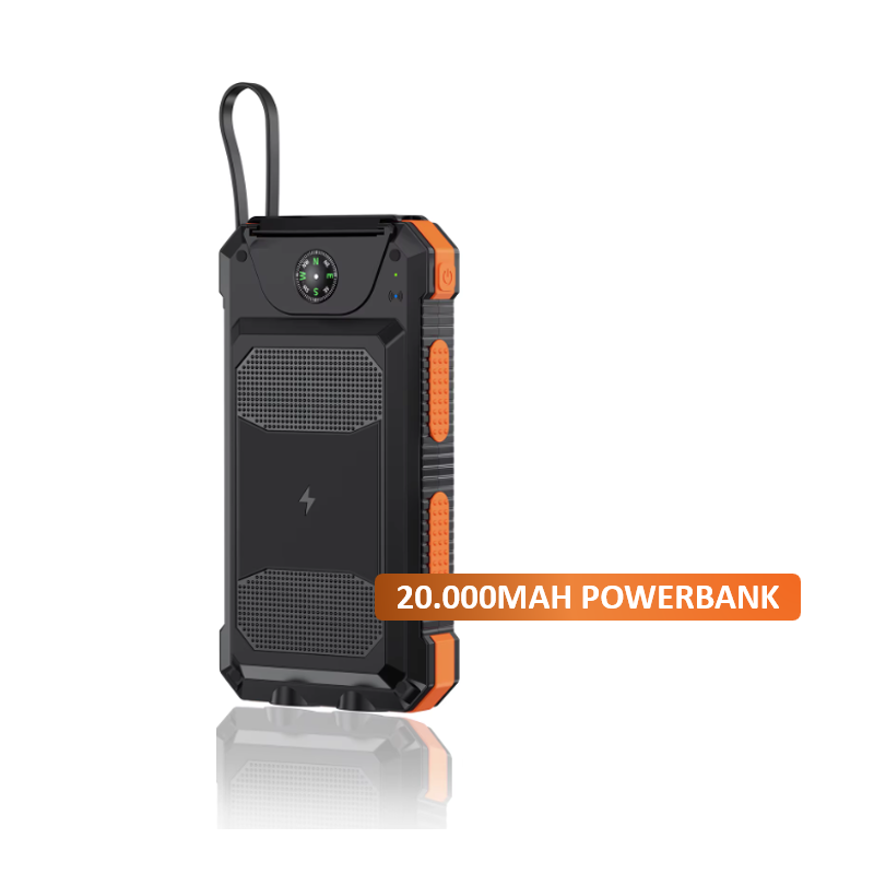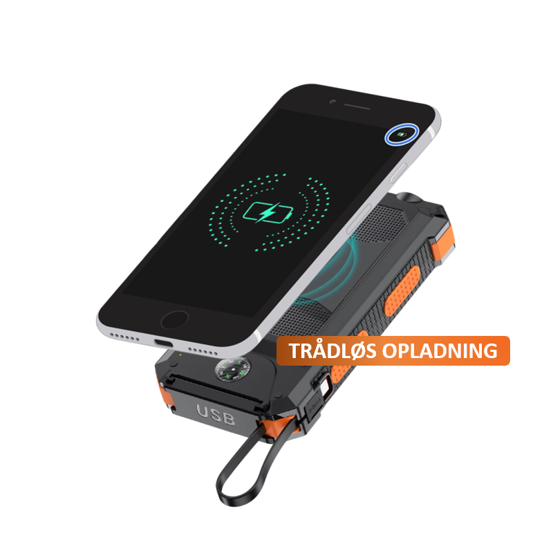 Oplev friheden ved at kunne oplade dine enheder – uanset hvor du er. Solar Powerbanken kombinerer høj kapacitet, hurtig opladning og smarte outdoor-funktioner, der gør den perfekt til både hverdagsbrug og eventyr i naturen.