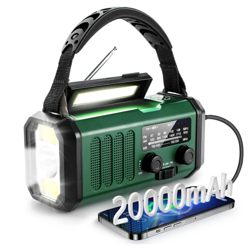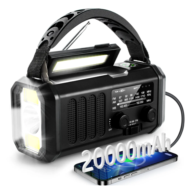 Nødradio m. Powerbank på 20.000mAh - prepperens vigtigste værktøj - opbevar den med dine overlevelsesting, så den er klar til krisesituationer. Den er også super praktisk at medbringe på shelter eller teltturen. På grund af solcellepanelet, samt håndsvinget er den oplagt til at bruge som powerbank til din telefon, da du altid er sikker på, at du kan genere strøm, også selvom du er udendørs.