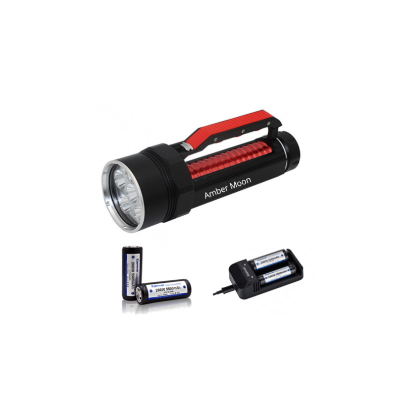 Amber Moon er designet til den seriøse ravjæger. Den kommer med 6 kraftige LED pærer der tilsammen giver en effekt på 30 watt - nok til at finde rav på op til 50m afstand. Udover at være driftsikker, lyser super godt og ligger godt i hånden, så er den også vandtæt skulle du tabe den i vandkanten.