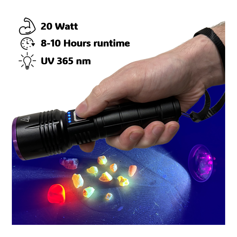 Globuz der er kendt for sine genarbejdet ravlygter, kommer nu med denne 365nm lygte som både kan finde rav, fossiler og krystaller.
