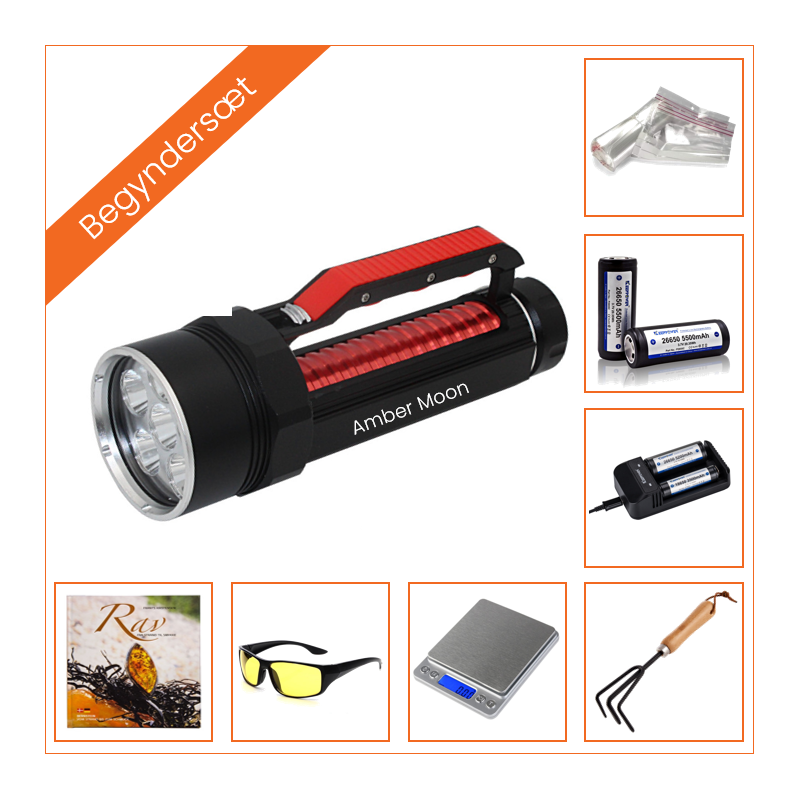 Kom i gang med at gå på ravjagt med et komplet begyndersæt. Sættet indeholder alt hvad hvad du har behov for for at kunne gå på ravjagt.