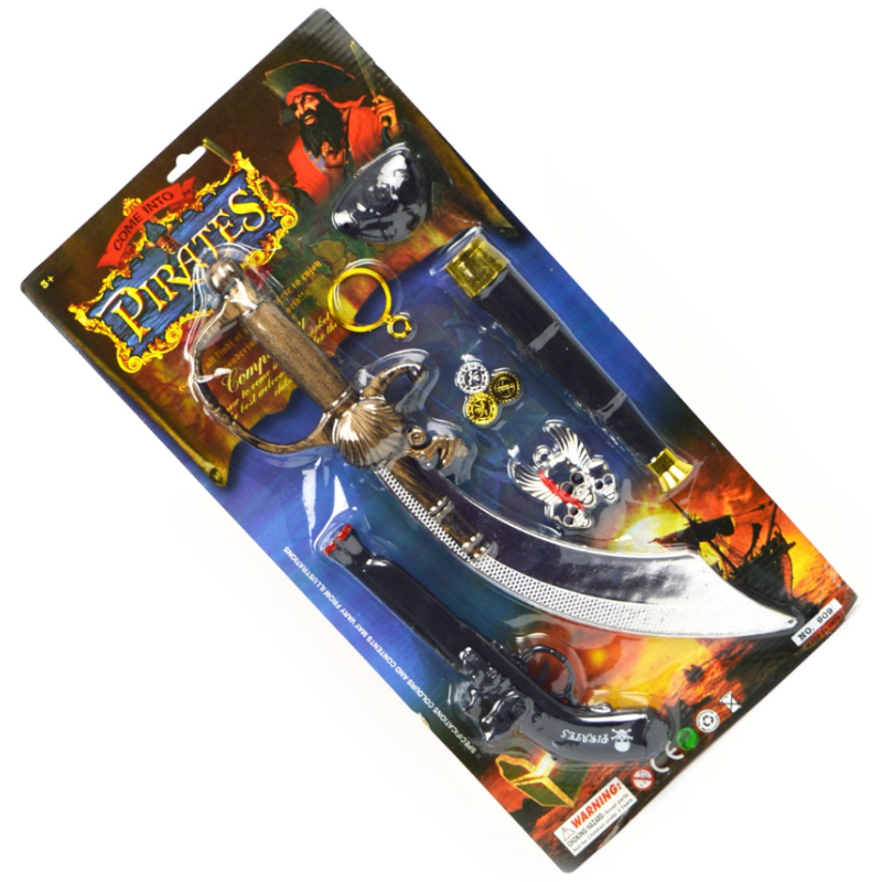 Pirat-sæt med 10 dele, sværd, pistol og meget mere.