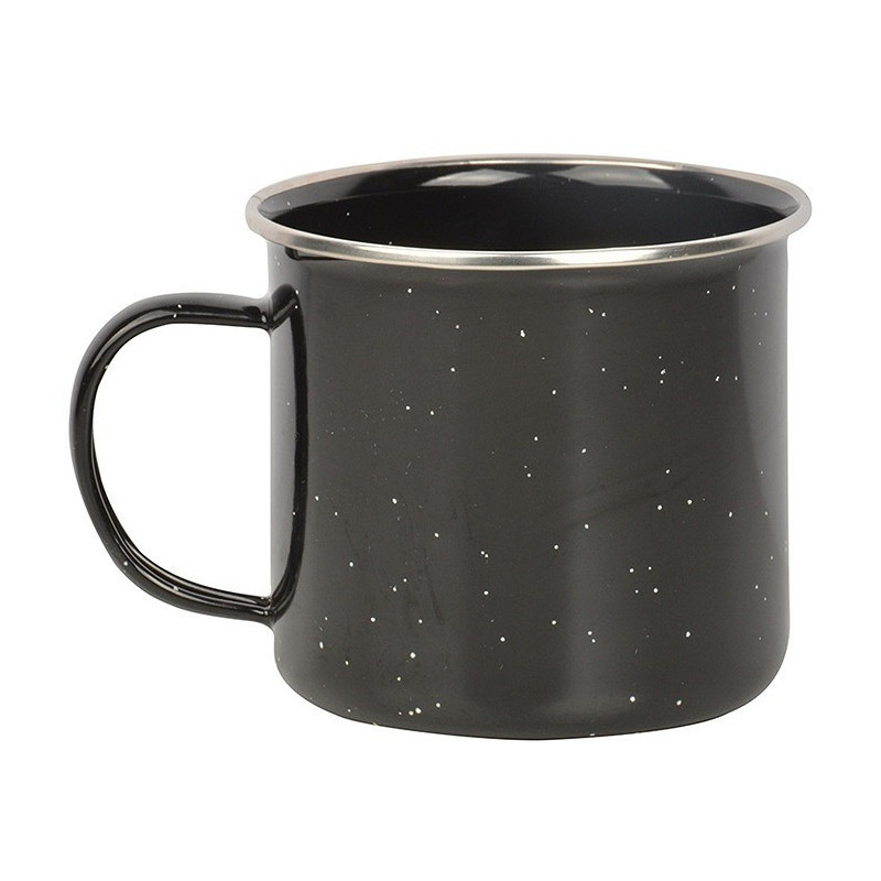 Super flotte emalje krus i sort med hvide prikker. Perfekt til et udendørs eventyr! Gode til både kolde og varme drikke.