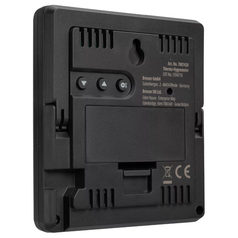 BRESSER Termo-Hygrometer bliver hurtigt en uundværlig hjælper til dit velbefindende. Den tydelige skærm viser den integrerede varmeadvarsel, som informerer om ugunstige niveauer af høj temperatur og luftfugtighed. Perfekt til individualister: Indstil en personlig fugtighedsalarm, så du bliver advaret, når dine specifikke grænseværdier overskrides.